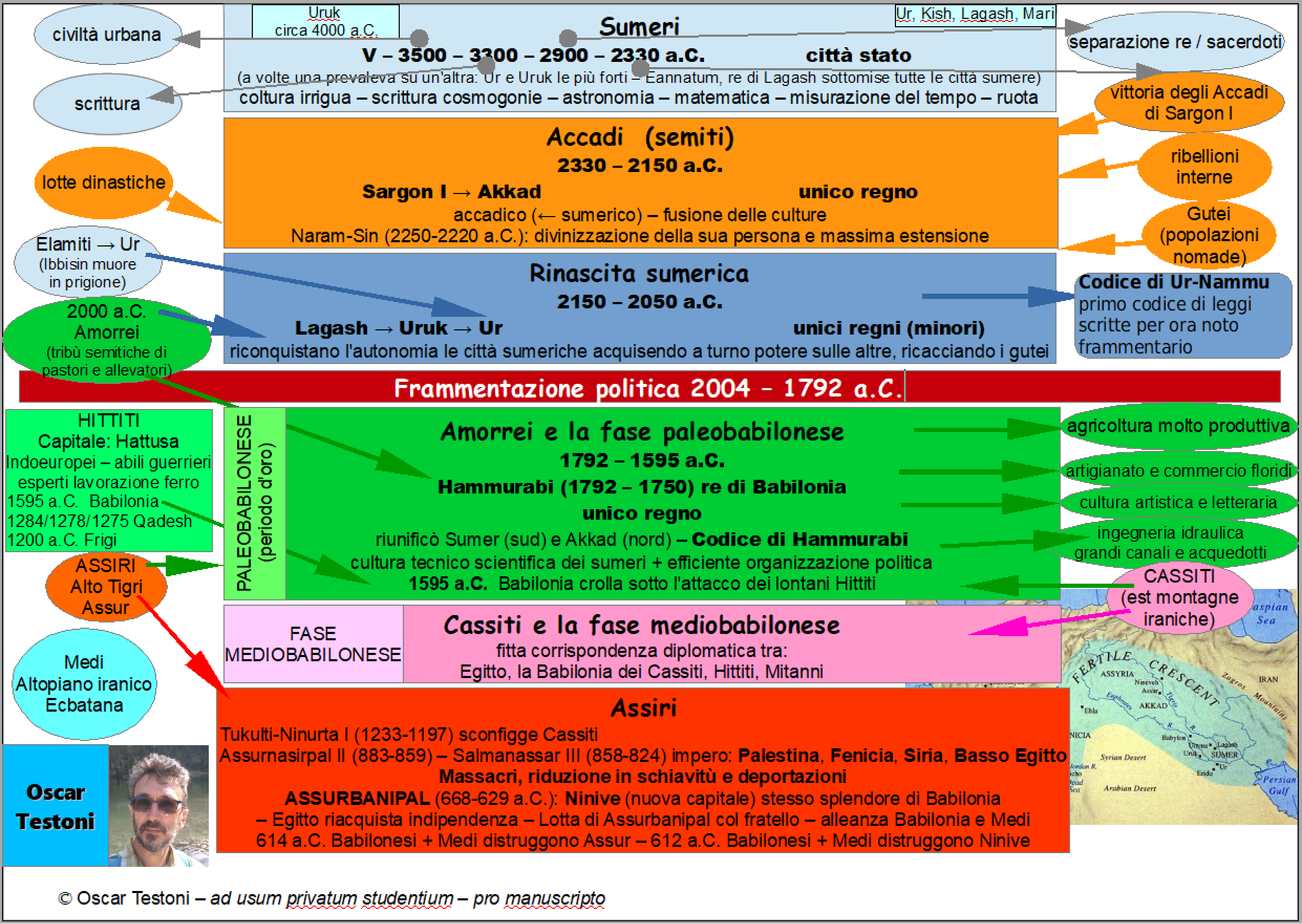 Dopo una lotta per la supremazia, il condottiero accadico SARGON I (2330-2280 a.C.) diviene re di Akkad, sottomette i Sumeri e unifica la Mesopotamia sotto un unico regno che cresce, con i suoi successori (in particolare col nipote di Sargon Naram-Sin 2250-2220 a.C.) fino alla Siria e al Mediterraneo -> il primo impero
